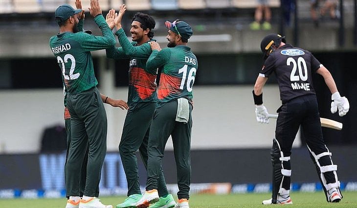 শরিফুল-তানজিমের আগুন বোলিংয়ে ৭০ রানে ষষ্ঠ উইকেট হারিয়ে খাদের মধ্যে পড়ে যায় নিউজিল্যান্ড। দু’পেসারই সমান ৩টি করে উইকেট নেন।