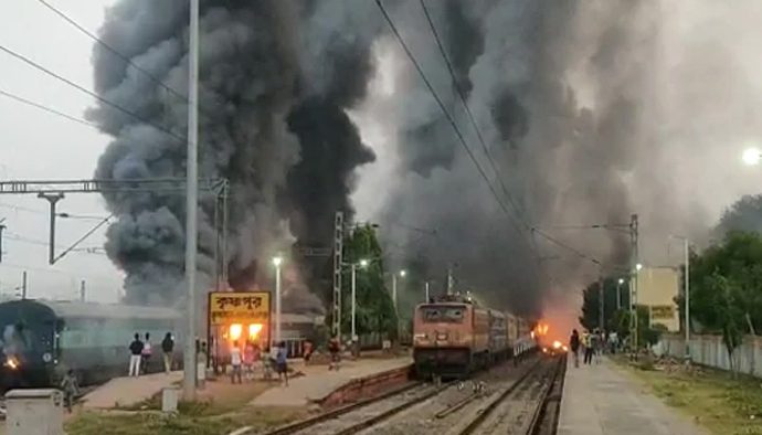 দিল্লিতে বাসে আগুন ধরাচ্ছে পুলিশ! ভিডিও ভাইরাল